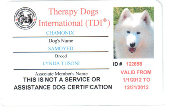 May 2012 - Chamonix is now certified with Therapy Dog International to visit assisted living facilities,