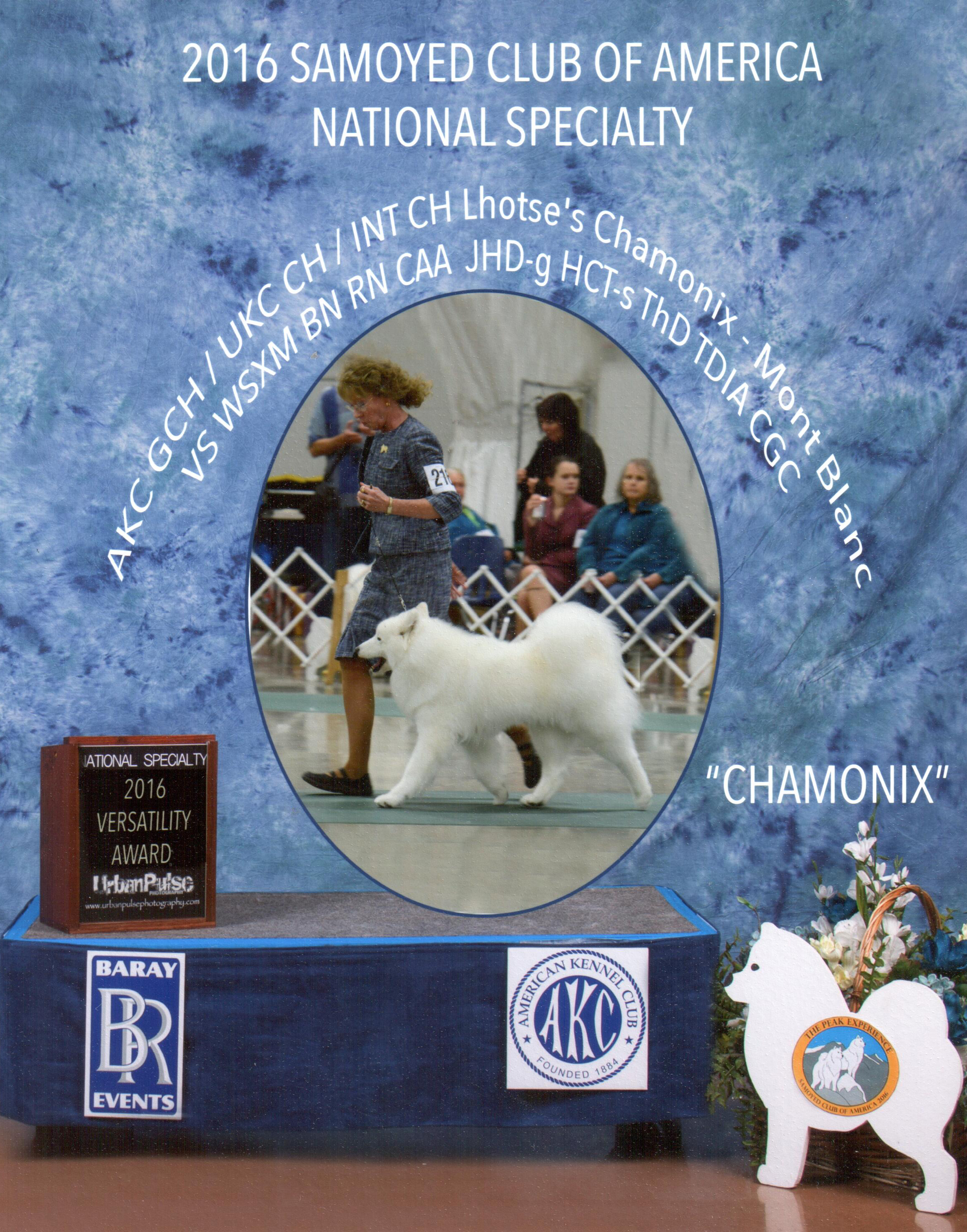 Chamonix and I in the ring for Best of Breed finals at the National. That evening the girls were both given their awards.